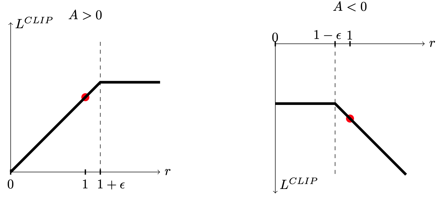 Clipping ratio removes the incentive for moving \(r_t\) outside interval \([1-\epsilon,1+\epsilon]\).