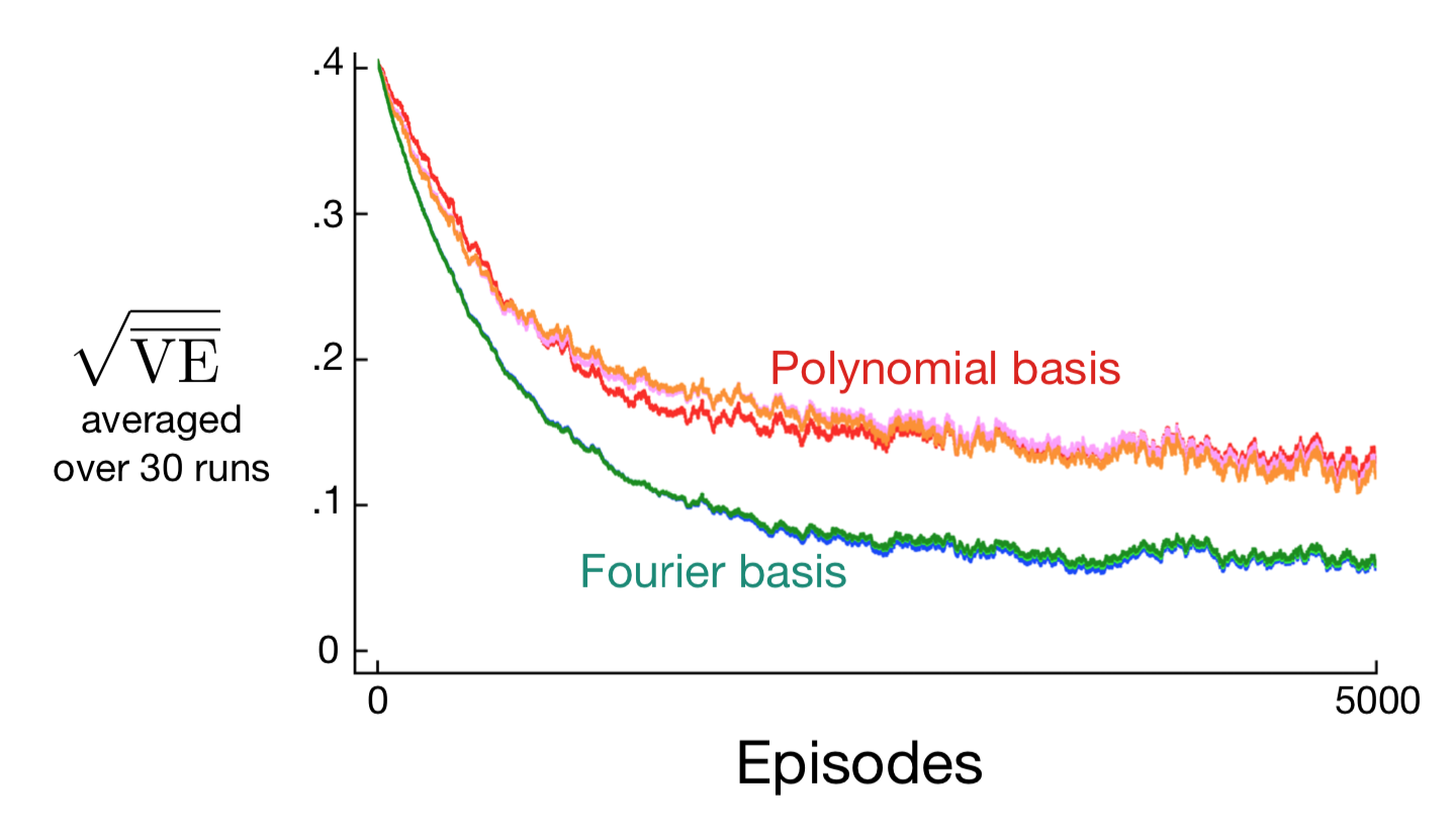 \[ \begin{gather} \mathbf{b} = E[R_{t+1}\mathbf{x}_t] \quad \text{and} \quad \mathbf{A} = E[ \mathbf{x}_t(\mathbf{x}_t - \gamma \mathbf{x}_{t+1})^T] \\ \mathbf{w}_\text{TD} = \mathbf{A}^{-1} \mathbf{b} \end{gather} \]